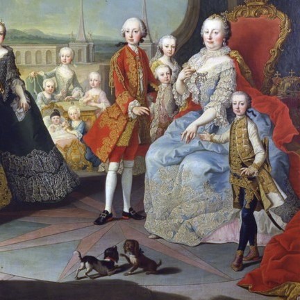 Maria Theresia hielt sich dafür kleine Hündchen, die sogenannten "Papillon-Hunde", die ihren Namen von ihren großen, an Schmetterlingsflügel erinnernden Ohren hatten. Sie waren sehr teuer und deshalb auch so sehr ein Statussymbol, dass sie selbst am bekannten Familienbild Platz fanden.
